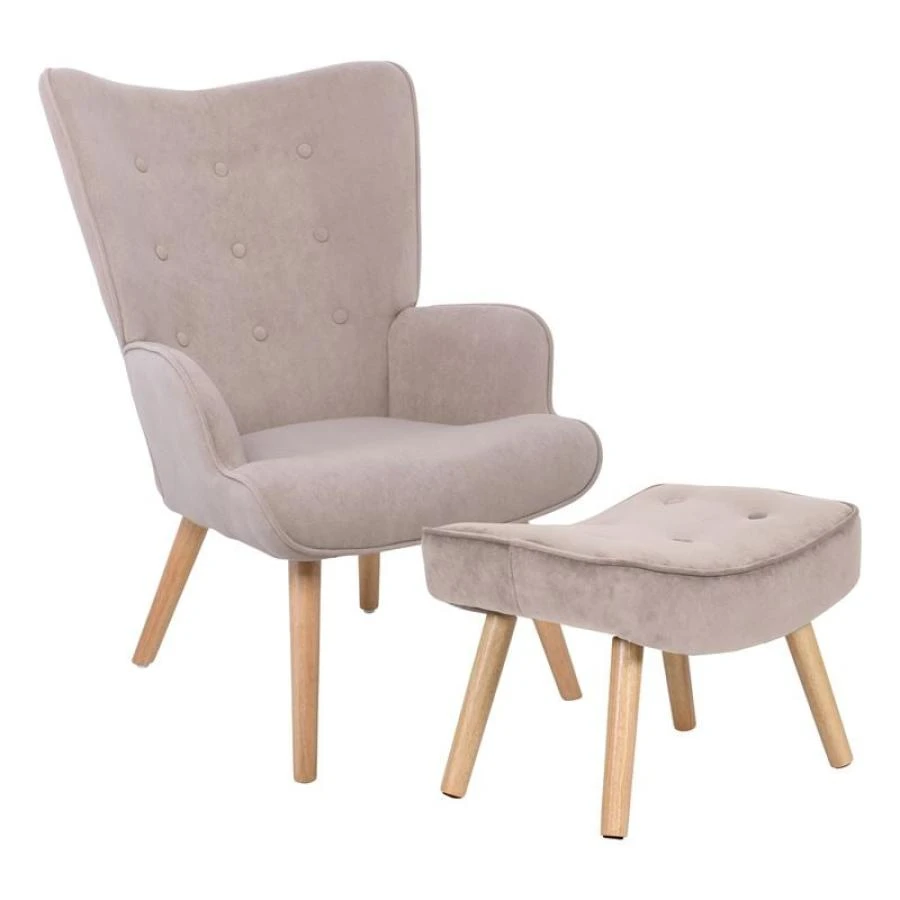 Ε7141,2 ALMA Set Πολυθρόνα + Σκαμπό Φυσικό/Ύφασμα Velure Αν.Καφέ (K/D)
