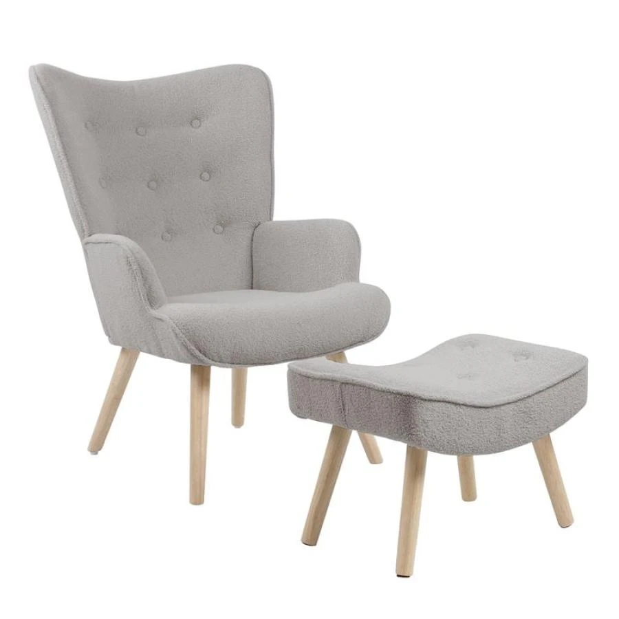 ALMA Πολυθρόνα – Μπερζέρα με Σκαμπό – Υποπόδιο Φυσικό, Teddy Ύφασμα Ανοιχτό Γκρι, K/D