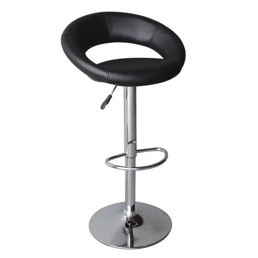 BELT Σκαμπό BAR με Πλάτη, Χρώμιο, PU Μαύρο, Ρυθμιζόμενο Ύψος, Περιστρεφόμενο