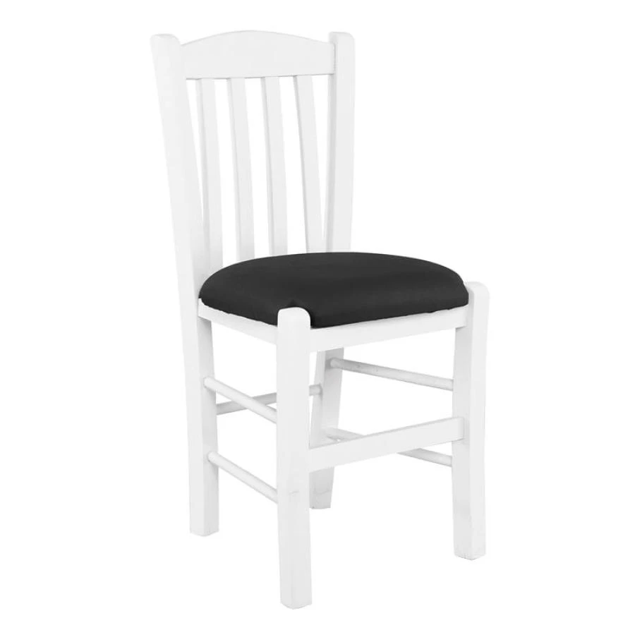 CASA Καρέκλα Οξιά Βαφή Εμποτισμού Άσπρο, Κάθισμα Pu Μαύρο