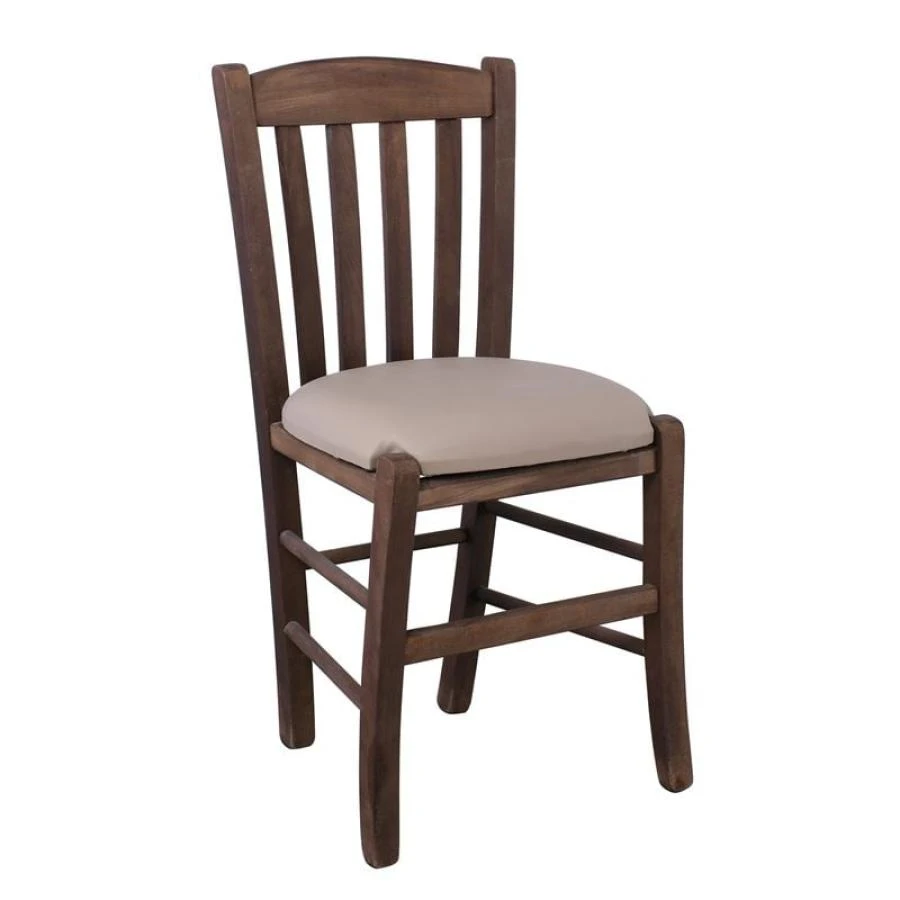 CASA Καρέκλα Οξιά Βαφή Εμποτισμού Καρυδί, Κάθισμα Pu Cappuccino