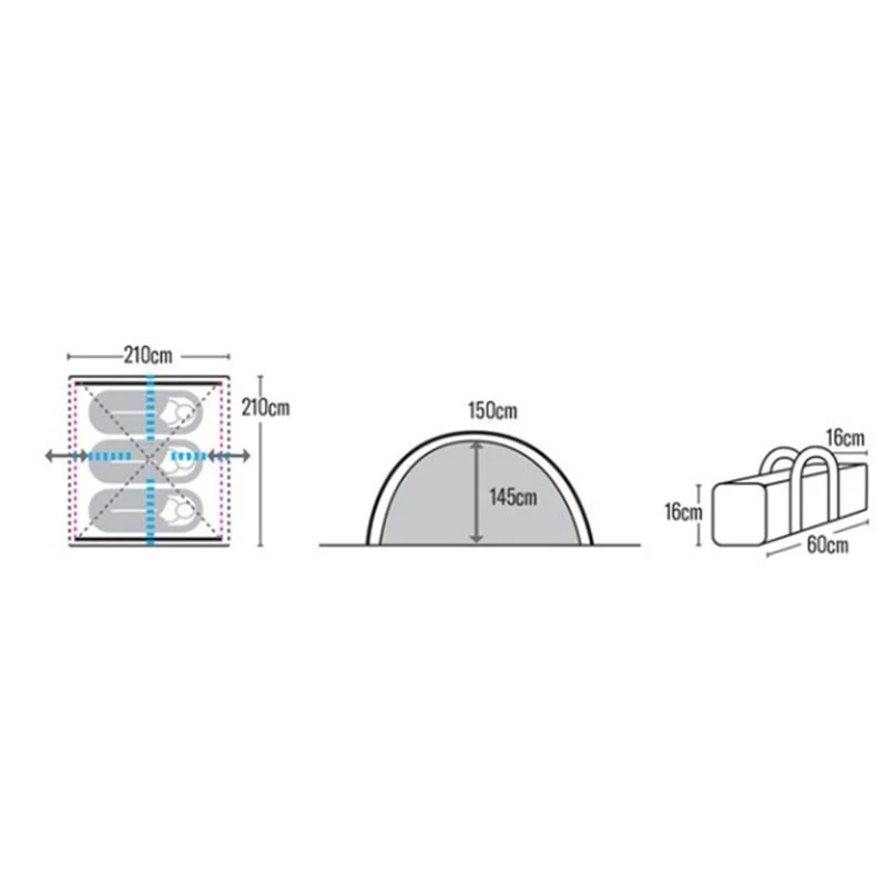 - Σκηνή Camping 3 ατόμων με διπλό πανί, δύο εισόδους και περιμετρικό εξαερισμό.