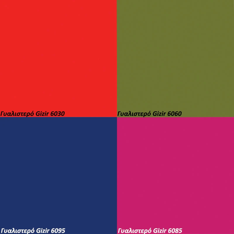 - Για τα γυαλιστερά χρώματα Gizir 6030 , 6060 , 6085 , 6095 υπάρχει επιπλέον επιβάρυνση +20%. Τα χρώματα αυτά είναι διαθέσιμα σε πάχος 18mm και επιλέγονται μόνο για διακοσμητικά στοιχεία όπως πορτάκια, συρτάρια και προσόψεις
