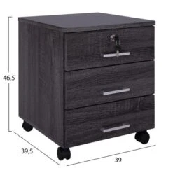 PROLINE Συρταριέρα Γραφείου Τροχήλατη, 3 Συρτάρια, 41x45x59εκ Απόχρωση Καρυδί Δρυς – Μαύρο