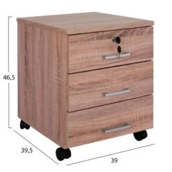 Συρταριέρα γραφείου επαγγελματική Amazon Pakoworld τροχήλατη χρώμα Sonoma 39x47x52,5εκ