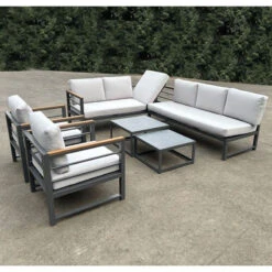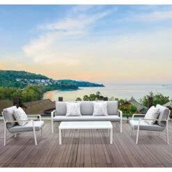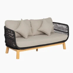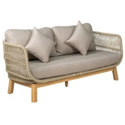 MARK Set Σαλόνι Κήπου 4τεμ, Acacia Φυσικό, Μαξιλάρια 2 Πολυθρ+1 Καναπ+1 Τραπεζάκι Μπεζ Rope Wicker