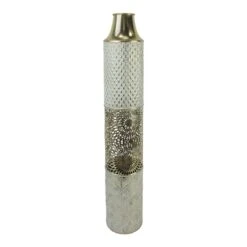 Διακοσμητικό βάζο δαπέδου Waka Inart μέταλλο σε χρυσή, γκρι και λευκή απόχρωση Φ14×81.3εκ