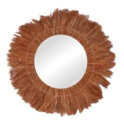Καθρέπτης Rounder Pakoworld Teak ξύλο σε φυσική απόχρωση Φ100×5εκ