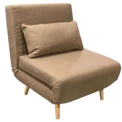 Πολυθρόνα-κρεβάτι Josuane Pakoworld μπεζ ύφασμα και ξύλινο πόδι σε φυσική απόχρωση 77x80x81εκ
