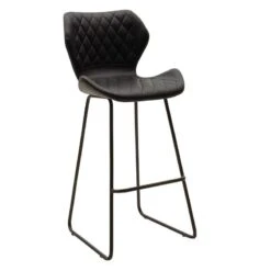 Σκαμπό μπαρ Camilla Pakoworld φυσικό Pe Rattan-ανθρακί Pu-μαύρο μέταλλο 47.5x58x117εκ