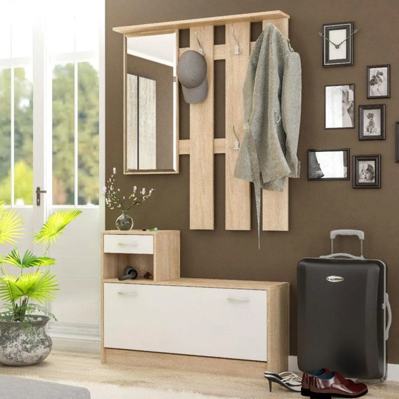 Έπιπλο εισόδου Jamie pakoworld φυσικό-λευκό 100×27,5×187εκ