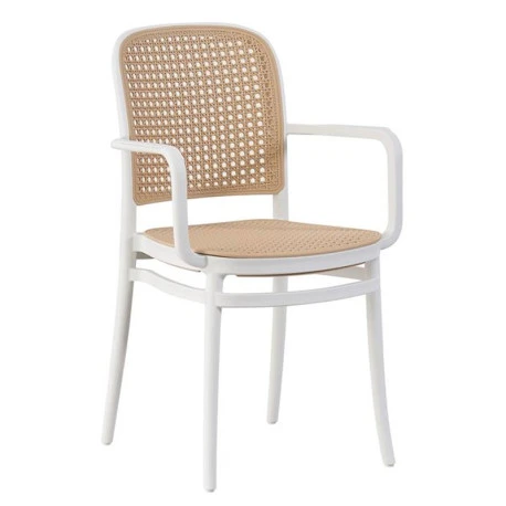 FLORENCE Πολυθρόνα PP Άσπρο, PP Rattan Μπεζ, Στοιβαζόμενη