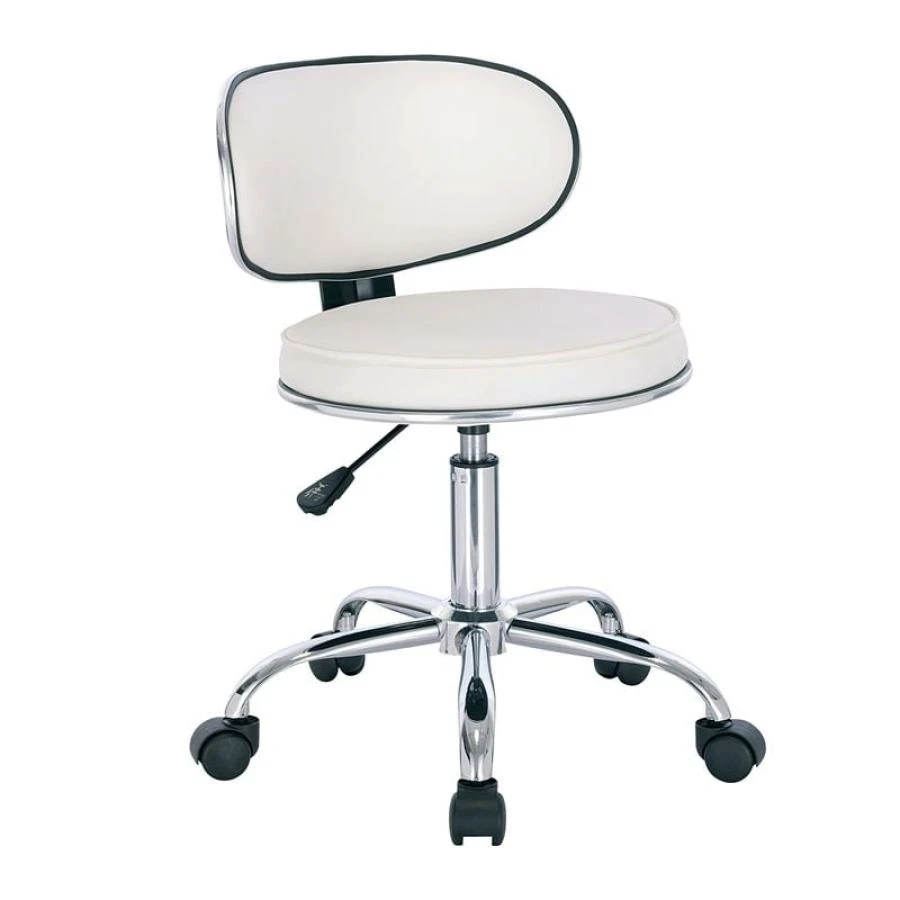 GLORY Σκαμπό με Πλάτη, Χρώμιο PU Άσπρο, Τροχήλατο, Ρύθμιση Ύψους, Περιστρεφόμενο