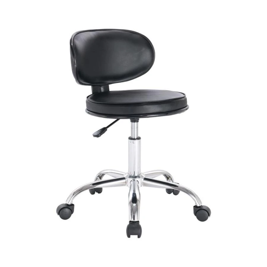 GLORY Σκαμπό με Πλάτη, Χρώμιο PU Μαύρο, Τροχήλατο, Ρύθμιση Ύψους, Περιστρεφόμενο