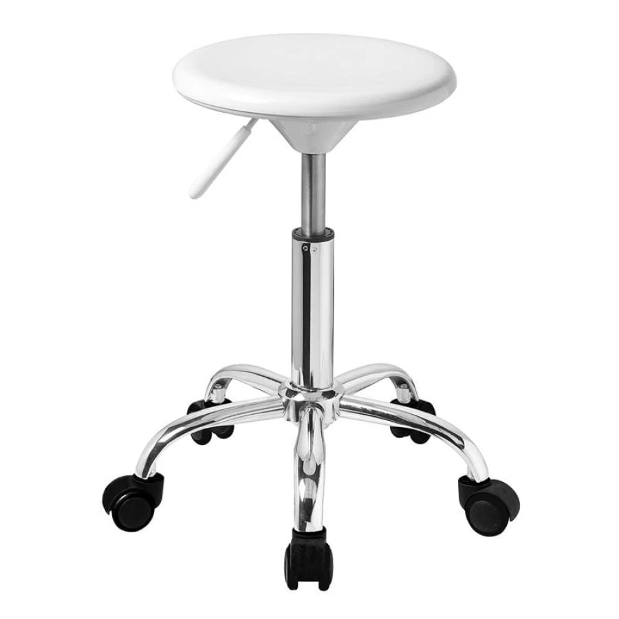 GLORY Σκαμπό, Βάση Χρώμιο, ABS Άσπρο, Ρυθμιζόμενο Ύψος, Περιστρεφόμενο, Τροχήλατο