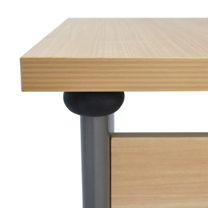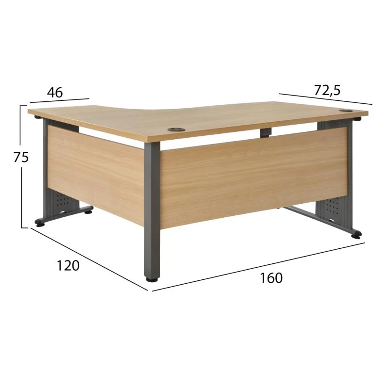 Με δύο εισόδους καλωδίων και πόδια μεταλλικά 3τμχ(στις 3 γωνίες του γραφείου) σε χρώμα γκρι.