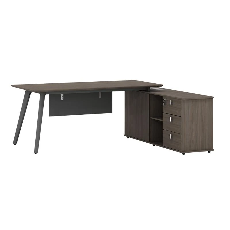 Γραφείο διεύθυνσης με ενσωματωμένο γωνιακό ερμάριο (είναι αναστρέψιμο), στον εντυπωσιακό χρωματισμό του καρυδί – ανθρακί. Κατασκευασμένο από υλικά υψηλών προδιαγραφών και σύμφωνα με τις εργονομικές απαιτήσεις του σήμερα.