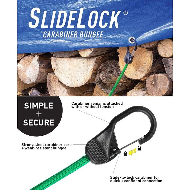- Το SlideLock Carabiner Bungee είναι ένα καινοτόμο προϊόν για ασφαλή δέσιμο και συγκράτηση αντικειμένων, στο camping, στη μεταφορά, στην αποθήκη κ.α.