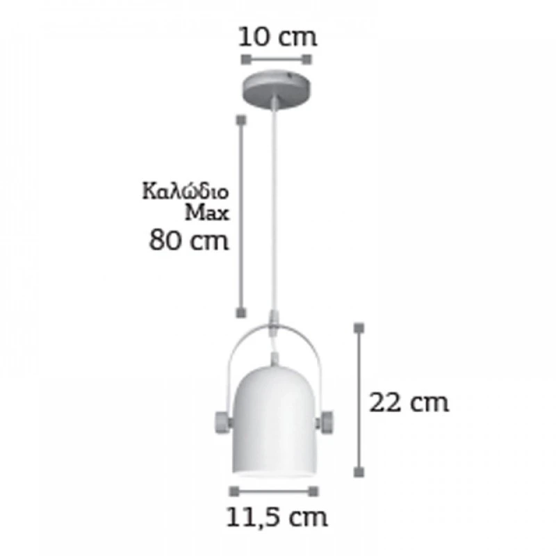 Μονόφωτο κρεμαστό φωτιστικό κατασκευασμένο από μέταλλο