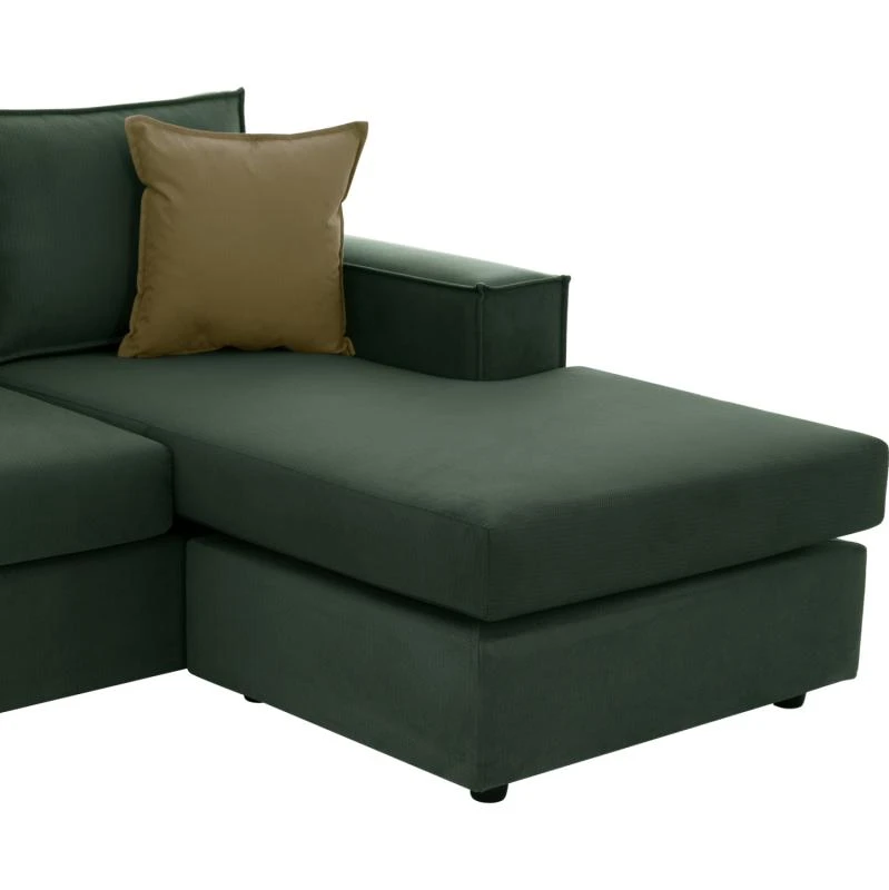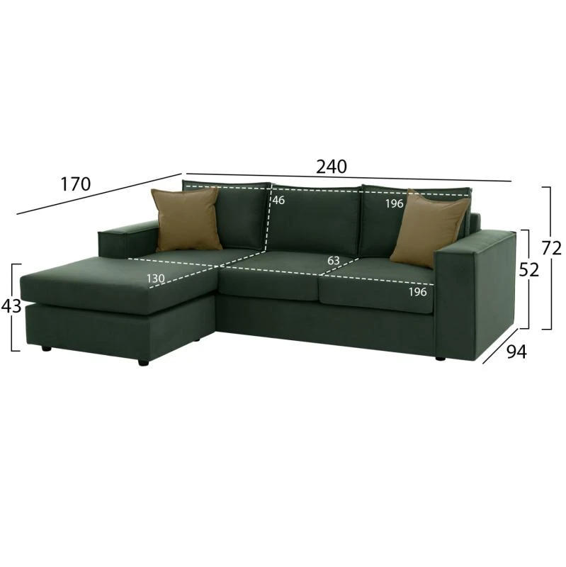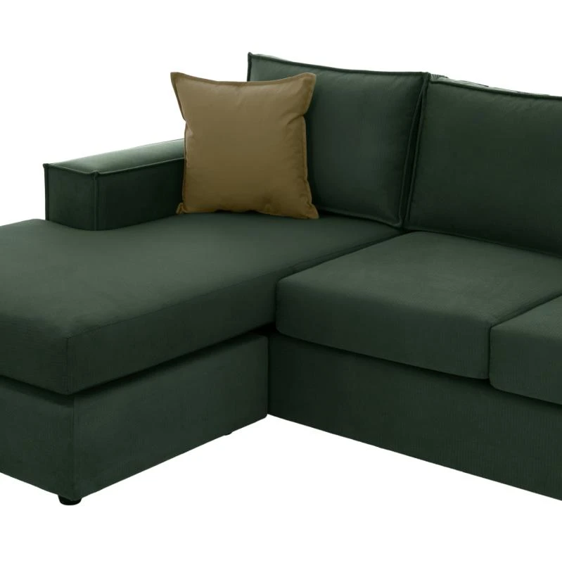 Το βασικό χαρακτηριστικό του καναπέ, όμως, είναι ότι δημιουργεί την γωνία που σας βολεύει, είτε δεξιά είτε αριστερή. Το κομμάτι που δημιουργεί την γωνία, είναι ανεξάρτητο και συνδέεται με τον υπόλοιπο καναπέ αρμονικά με ύφασμα με «χρατς» το οποίο βρίσκεται κάτω από το μεγάλο μαξιλάρι της γωνίας.