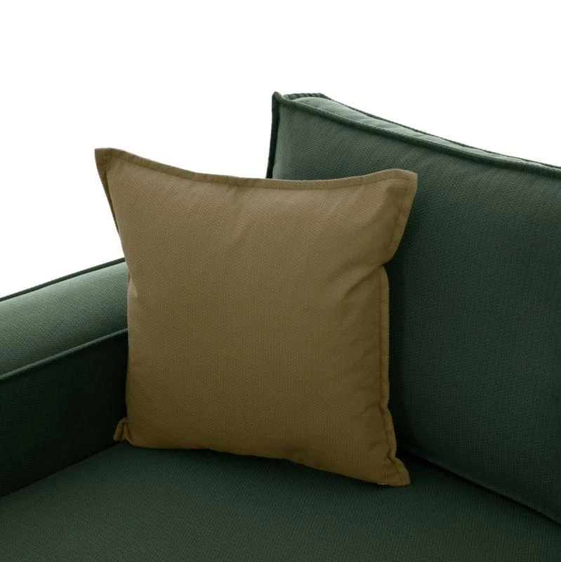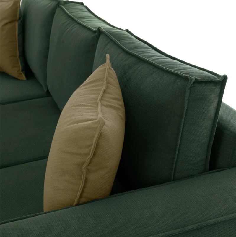 Ξεκινώντας από τα βασικά και τα προφανή, το χρώμα της επένδυσης με την βελούδινη υφή αυτού του καναπέ, είναι MAKALU 07 ΠΡΑΣΙΝΟ. Διαθέτει 3 μαξιλάρια πλάτης και 3 μαξιλάρια καθίσματος που θα δώσουν την τέλεια αίσθηση άνεσης! Η ευχάριστη αισθητική πινελιά με το ρέλι στο ίδιο χρώμα που διατρέχει τις γωνίες στα μπράτσα αλλά και τα μαξιλάρια πλάτης και τα διακοσμητικά μαξιλάρια ολοκληρώνει την αισθητική υπεροχή του καναπέ με τον καλύτερο τρόπο. Μάλιστα, τα δύο διακοσμητικά μαξιλαράκια είναι σε ΧΡΥΣΟ χρώμα δημιουργώντας μια όμορφη διχρωμία.