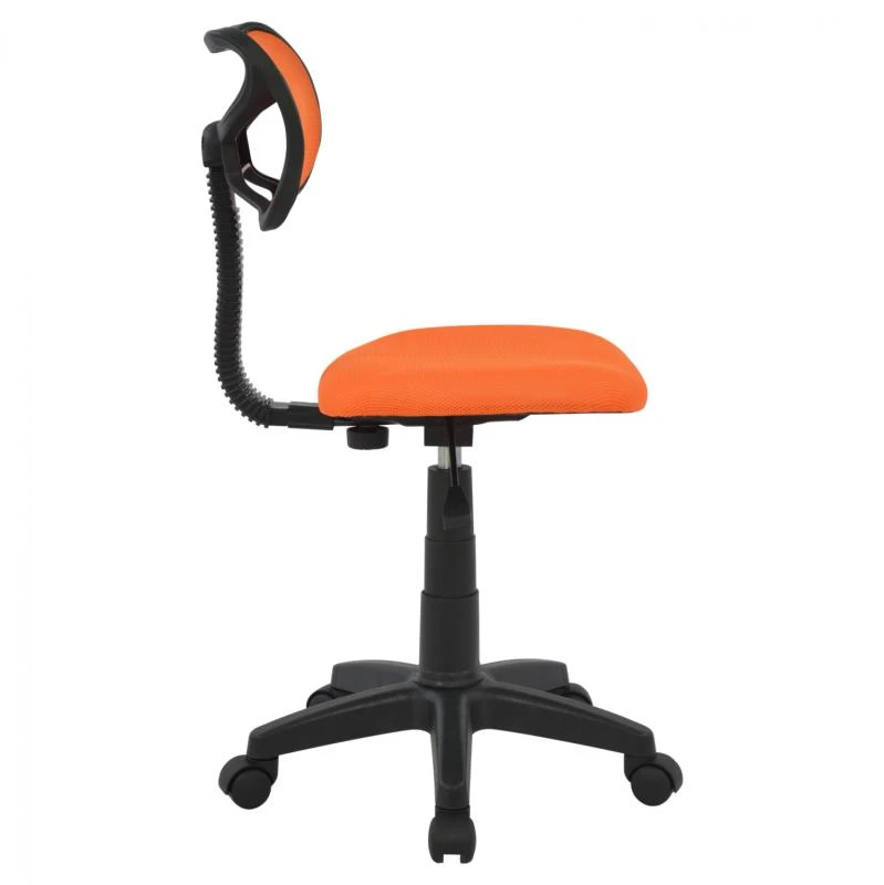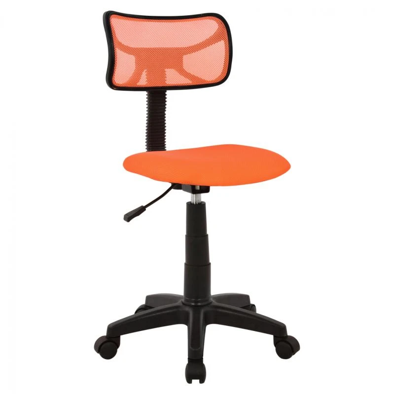 Αυτή είναι η καρέκλα γραφείου AKHILA. Μια λιτή και μινιμαλιστική καρέκλα σε όμορφο πορτοκαλί χρώμα. Το χαρακτηριστικό αυτή της καρέκλας είναι ότι δεν έχει μπράτσα και η πλάτη είναι μινιμαλιστική και συνδέεται με το κάθισμα μέσω ενός εύκαμπτου σωλήνα που περιέχει και τον μηχανισμό της ανάκλισης. Η πλάτη είναι κυρτή για να αγκαλιάζει το σώμα. Η βάση είναι μαύρη όπως και τα ροδάκια. Το όλο design παραπέμπει σε σκαμπό γραφείου με την προσθήκη της πλάτης με αποτέλεσμα η καρέκλα να μην περνάει απαρατήρητη! Προσφέρει, μάλιστα, και ρύθμιση ύψους και ανάκλισης μέσω του εύκαμπτου σωλήνα και ενός περιστροφικού μοχλού κάτω από το κάθισμα. Η καρέκλα αντέχει μέχρι 60 κιλά βάρος.