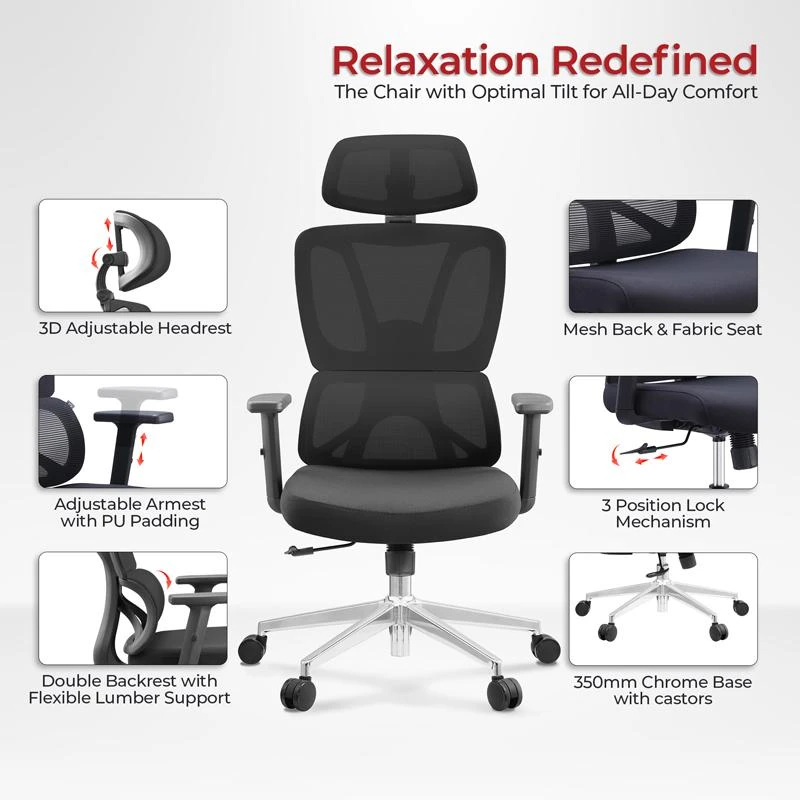 - Ανθεκτικός σκελετός: Έδραση σε πεντακτινωτή βάση πολυπροπυλενίου υψηλών αντοχών μαύρου χρώματος.