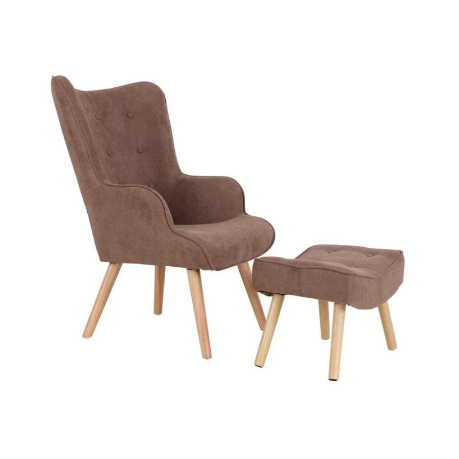 ΕΜ143,1S MARON BUTTON Set Πολυθρόνα & Σκαμπό, Ύφ.Σκ.Καφέ