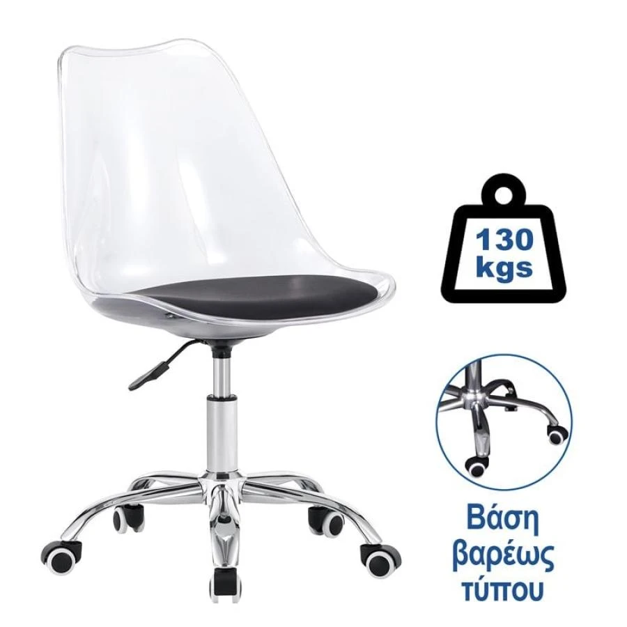 ΕΟ201,1C MARTIN Γραφείου Καρ.PET Clear/Pu Μαύρο (Μοντ/νη ταπετσαρία)