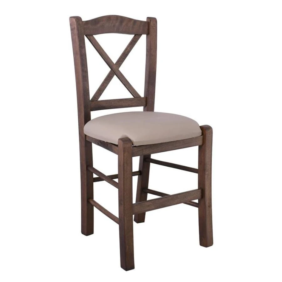 METRO Καρέκλα Οξιά Βαφή Εμποτισμού Καρυδί, Κάθισμα Pu Cappuccino