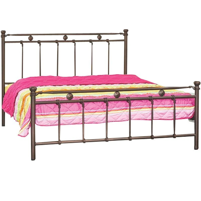 Κρεβάτι μεταλλικό, με κάθετες βέργες και διακοσμητικές κουπαστές στις γωνίες. Σε πολλά χρώματα και διαστάσεις.
