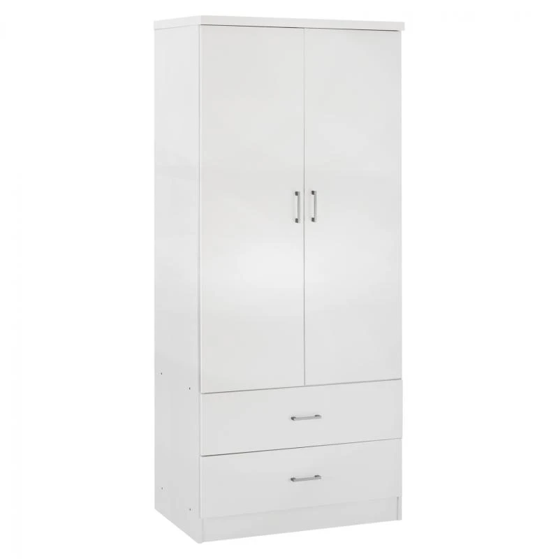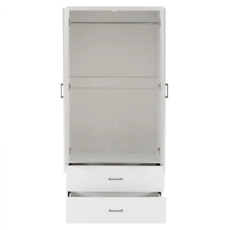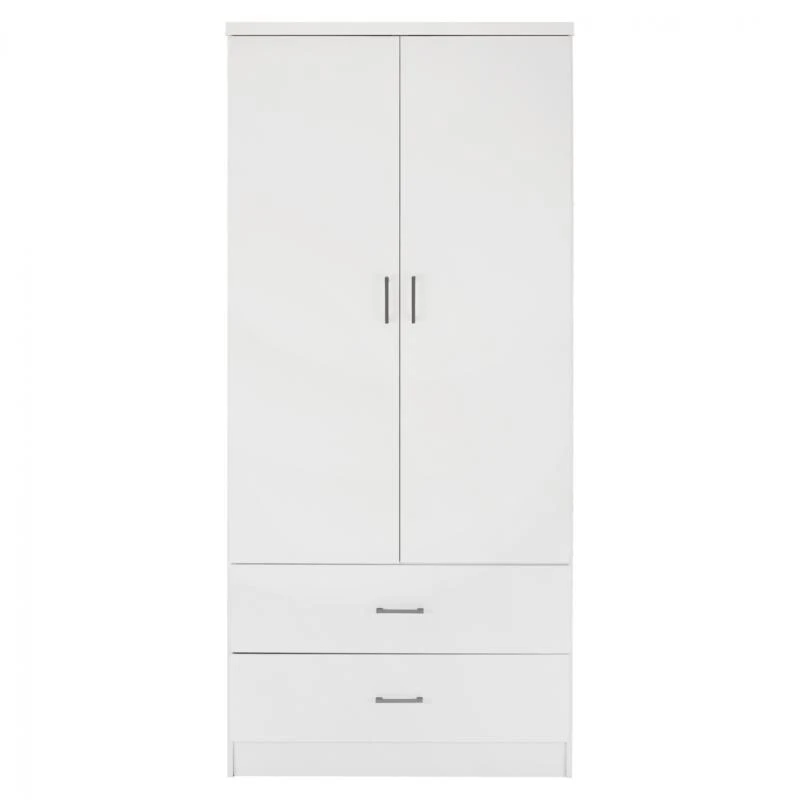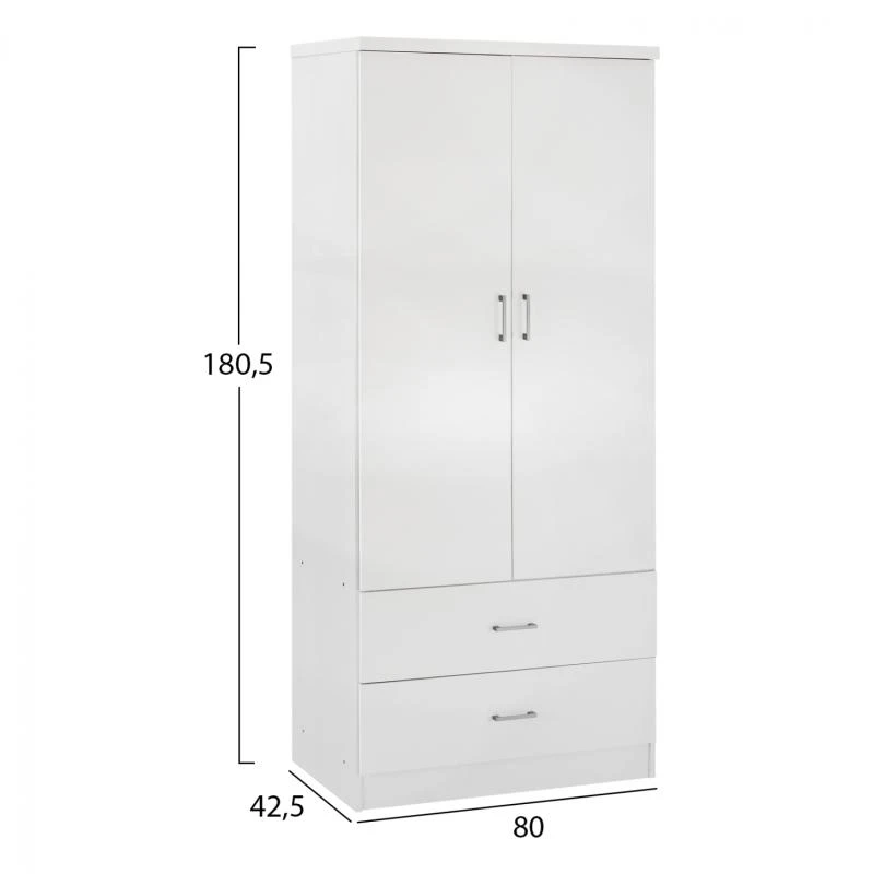 Ντουλάπα μελαμίνης δίφυλλη με δύο συρτάρια σε λευκή απόχρωση.