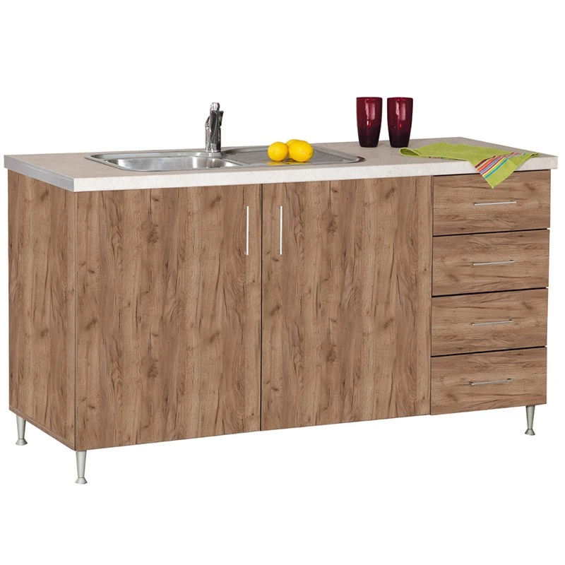 Ντουλάπι Ξύλινο Με Νεροχύτη 2φυλλο Με 4 Συρτάρια 152x60x85εκ