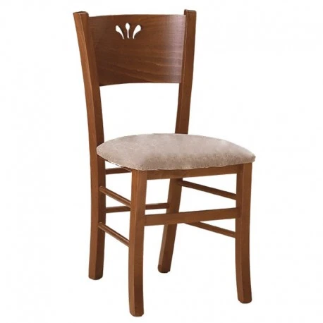Καρέκλα ξύλινη λούστρου, επενδεδυμένη με δερματίνη