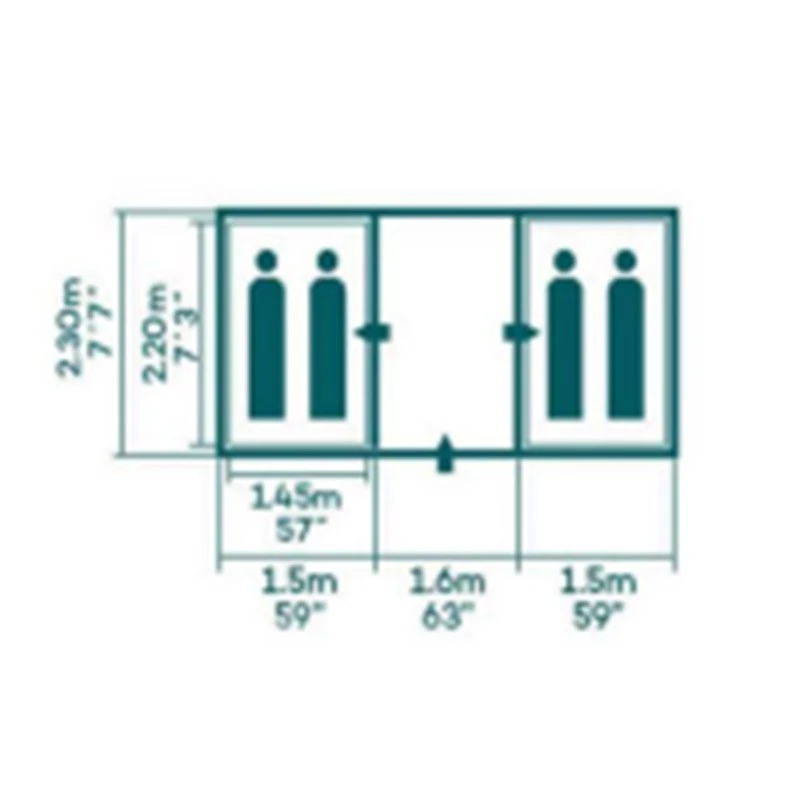 Έχει ύψος 1,85 μέτρα και συνολικό πλάτος 4,6 μέτρα, καθιστώντας την μια πολύ κατοικήσιμη σκηνή στο εσωτερικό, κατάλληλη για μεσομακροπρόθεσμες αλλά εξαιρετικά άνετες διαμονές.