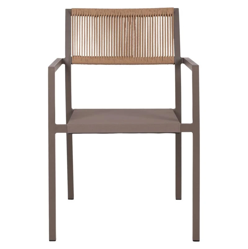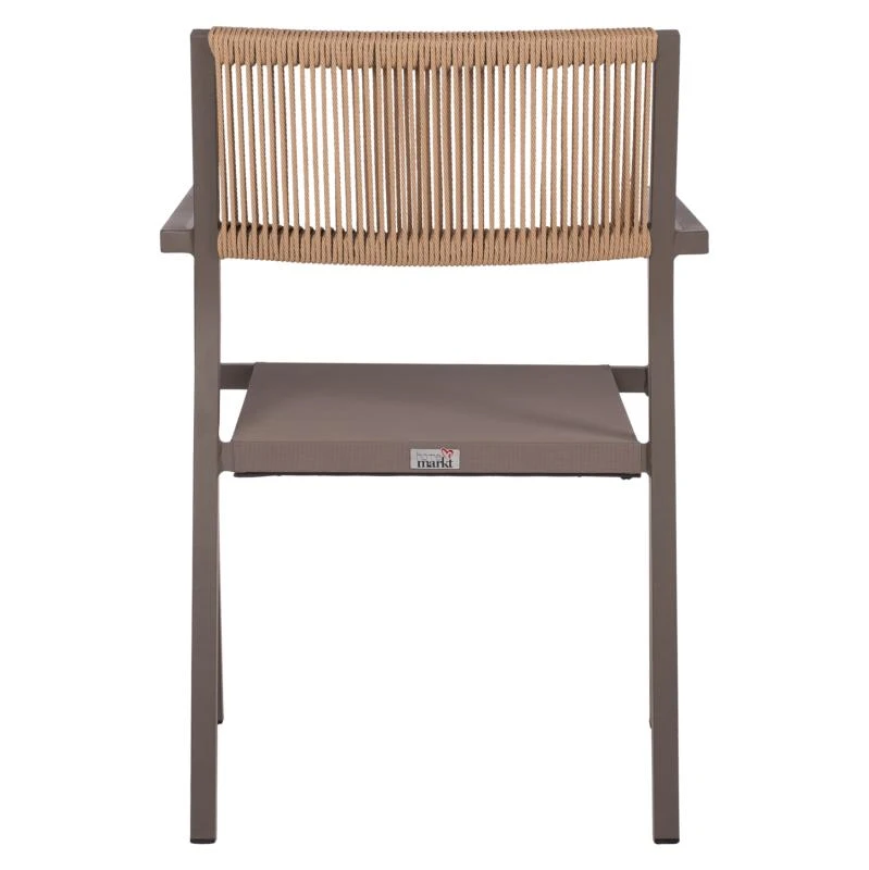 Η πλάτη της πολυθρόνας είναι επενδυμένη με πολυεστερικό RATTAN. Στα περισσότερα έπιπλα κήπου και γενικά σε έπιπλα για εξωτερικούς χώρους χρησιμοποιείται συνθετικό υλικό από PVC, δηλαδή τεχνητές ίνες υψηλής ποιότητας. Αυτό δίνει στην κατασκευή εξαιρετική αντοχή και ανθεκτικότητα σε ακραίες συνθήκες ζέστης ή κρύου.