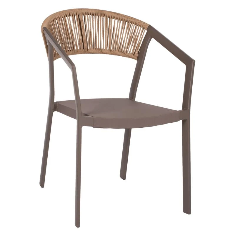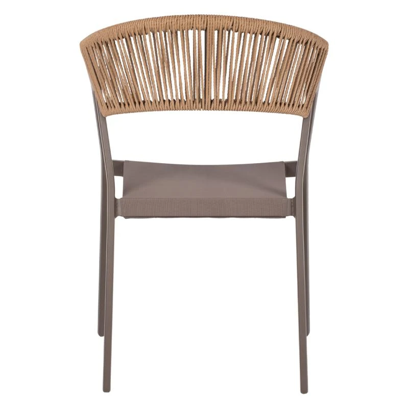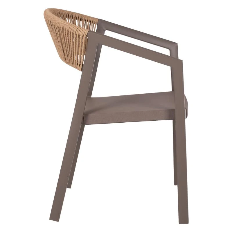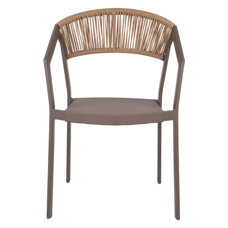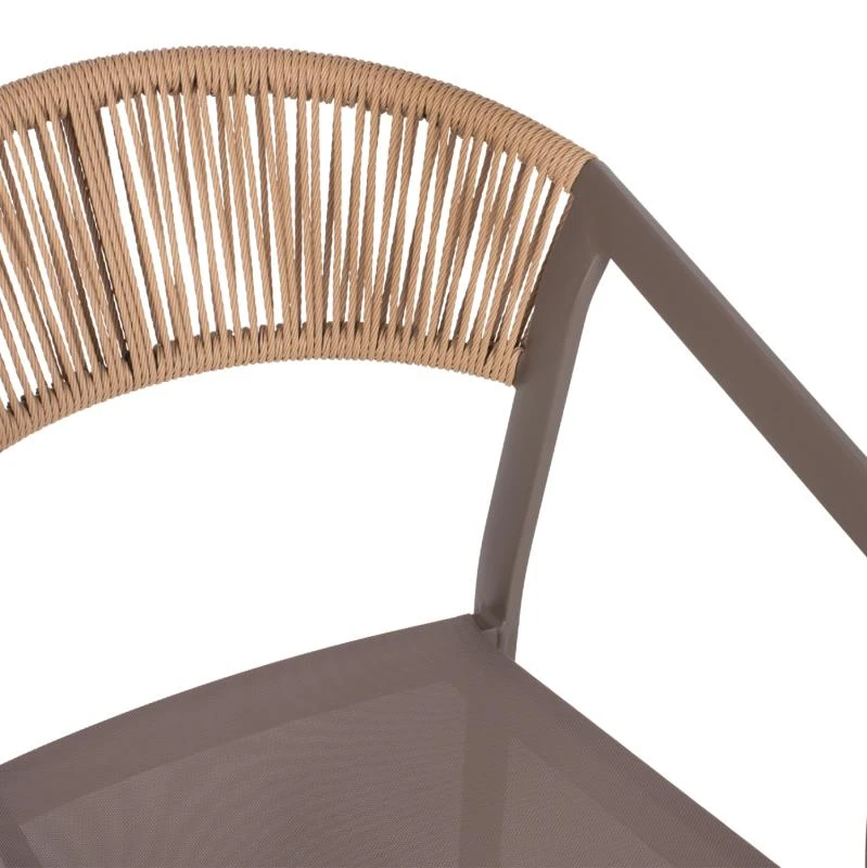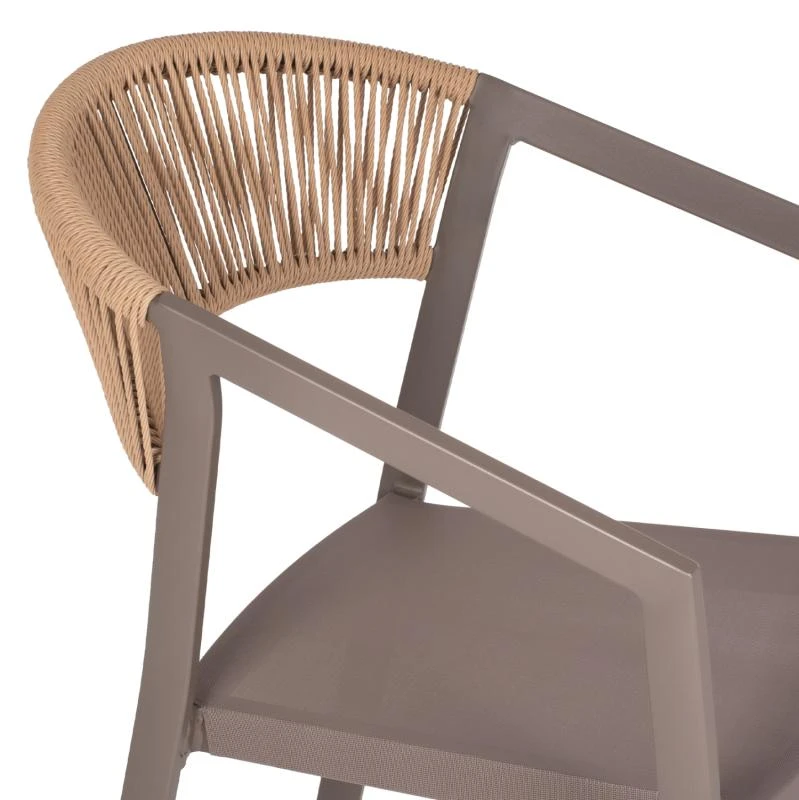 Η πλάτη της πολυθρόνας είναι επενδυμένη με πολυεστερικό RATTAN. Στα περισσότερα έπιπλα κήπου και γενικά σε έπιπλα για εξωτερικούς χώρους χρησιμοποιείται συνθετικό υλικό από PVC, δηλαδή τεχνητές ίνες υψηλής ποιότητας. Αυτό δίνει στην κατασκευή εξαιρετική αντοχή και ανθεκτικότητα σε ακραίες συνθήκες ζέστης ή κρύου.