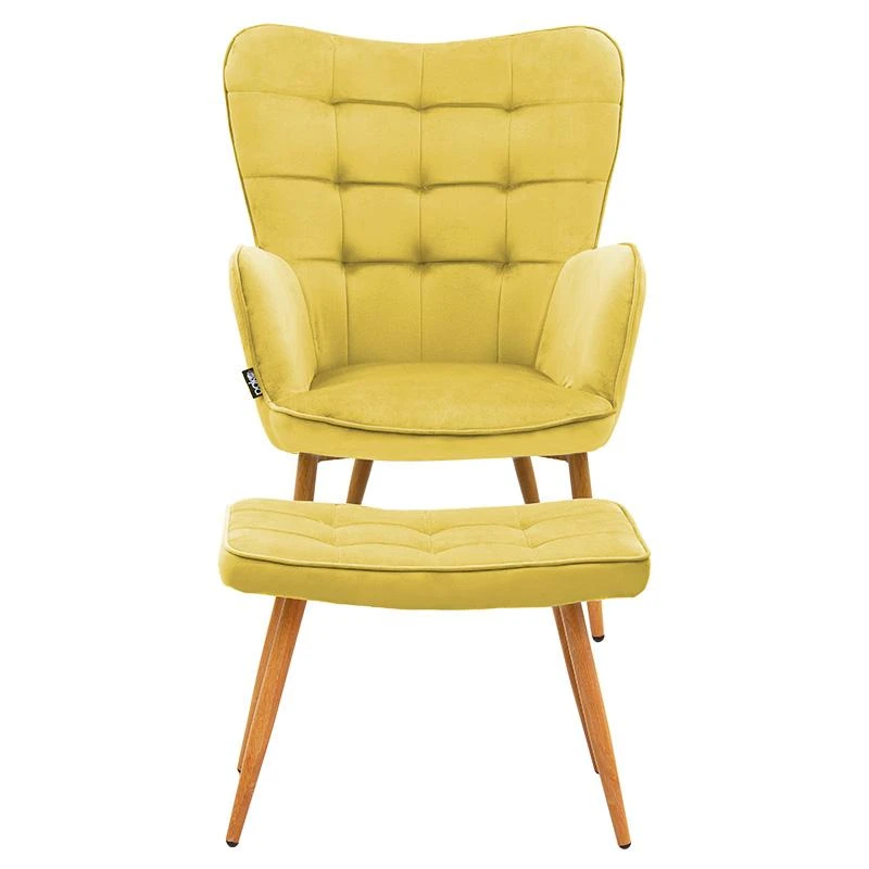 Πολυθρόνα Maddison με υποπόδιο-μαξιλάρι pakoworld βελούδο κίτρινο-φυσικό 68x72x98εκ.