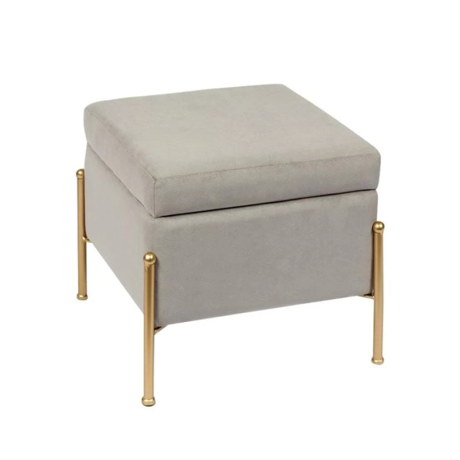 RAY Αποθηκευτικό Σκαμπό, Μέταλλο Βαφή Χρυσό, Ύφασμα Velure, Απόχρωση Γκρι
