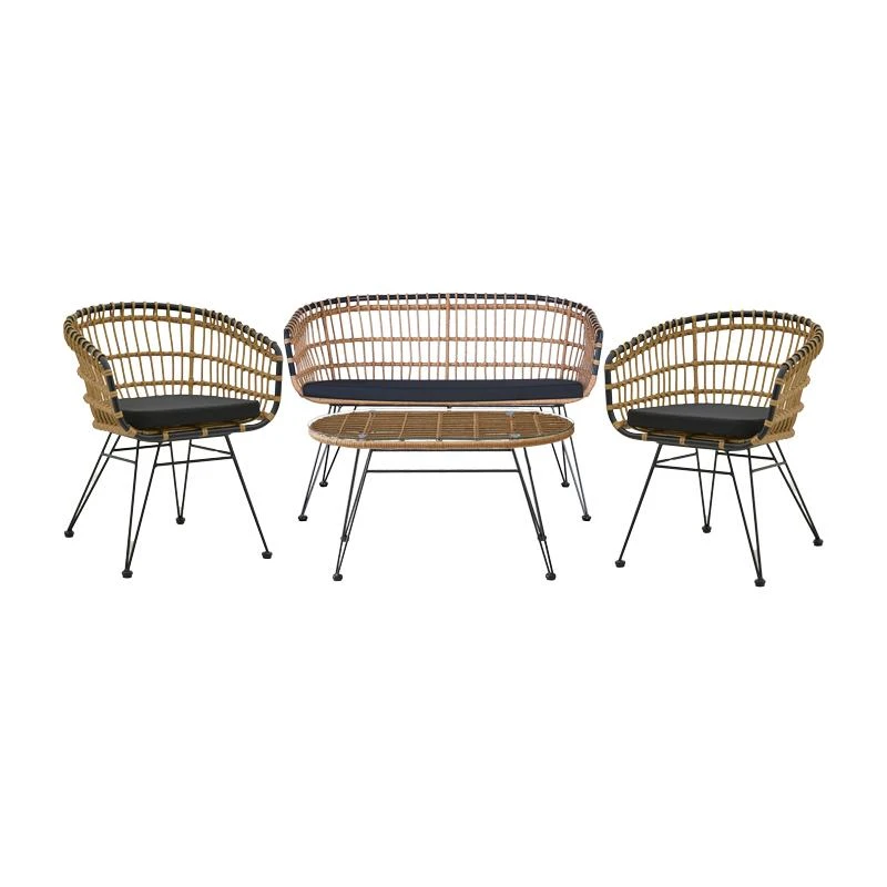 - Κυρίως επιφάνεια τραπεζιού και καθίσματος από PE rattan. Το PE rattan είναι ένα είδος οικολογικού συνθετικού rattan, ανακυκλώσιμο και με μεγαλύτερη ανθεκτικότητα σε σχέση με τα άλλα είδη.