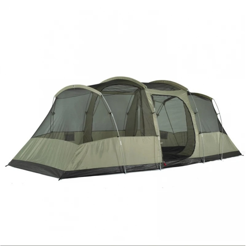 Ευρύχωρη, ευάερη σκηνή 8 ατόμων, ιδανική για οικογένειες. Τα υπνοδωμάτια είναι αντικρυστά για μεγαλύτερη ιδιωτικότητα.