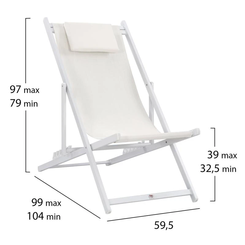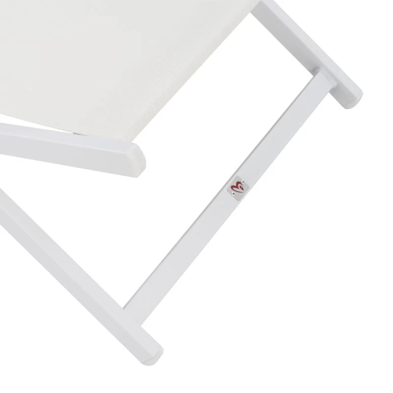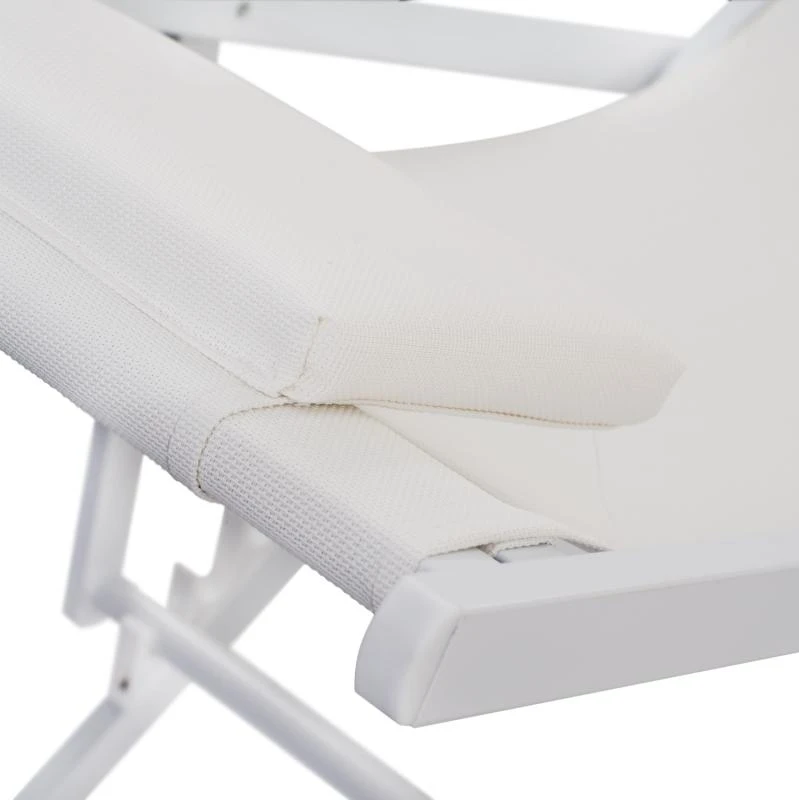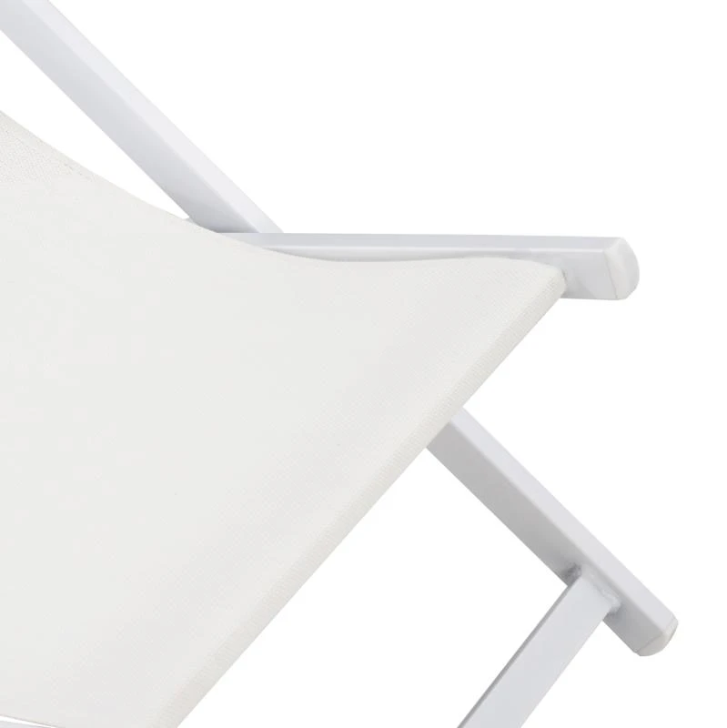 Η συγκεκριμένη, έχει κλασσικό σχεδιασμό με πλάτη που στηρίζει το σώμα και με εξτρά μαξιλάρι για το κεφάλι και σκαλιέρα 5 θέσεων. Το χρώμα της είναι ΛΕΥΚΟ τόσο στον σκελετό, όσο και στο textilene.