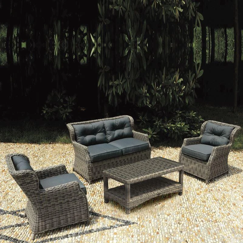 VITORIA Set Σαλόνι Κήπου ALU: Τραπεζάκι+2 Πολυθρόνες+2Θέσιος Wicker Grey Brown, Μαξ.Ανθρακί
