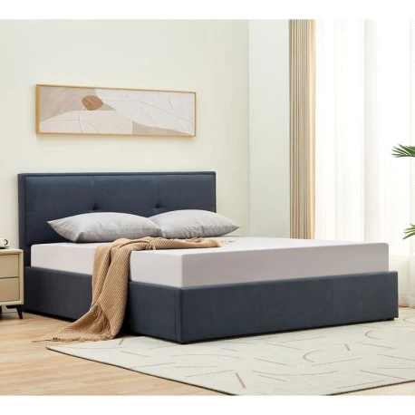 WALTER Κρεβάτι Διπλό με Χώρο Αποθήκευσης, για Στρώμα 160x200cm, Ύφασμα Γκρι